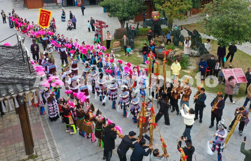 图片说明:12月22日,在广西融水苗族自治县梦呜苗寨,苗族同胞在迎接进寨“同年”。