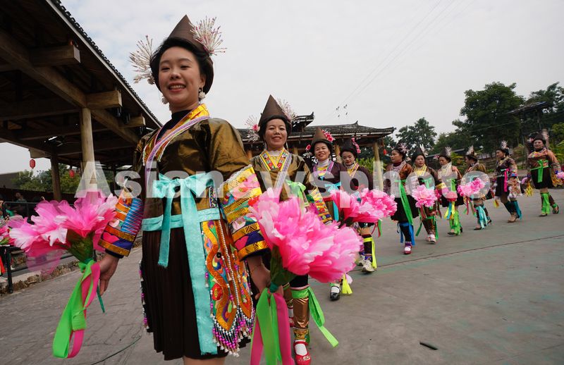 图片说明:12月22日,在广西融水苗族自治县梦呜苗寨,苗族同胞在踩堂。