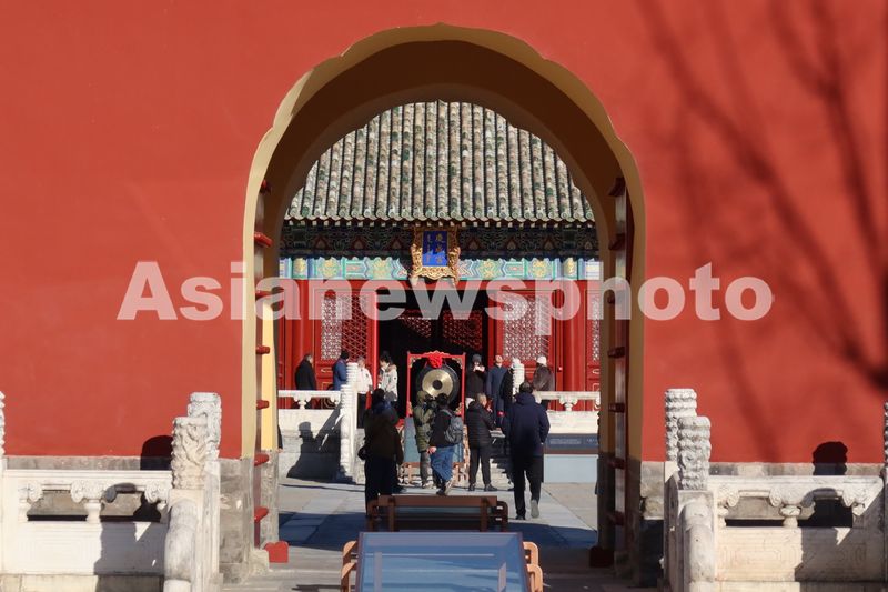 图片说明:12月21日,游客在北京先农坛庆成宫参观。