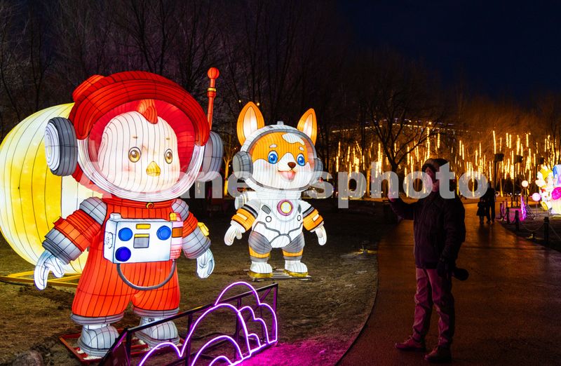 图片说明:2024年12月25日,人们在呼和浩特市赛罕区小草公园灯会上赏灯。