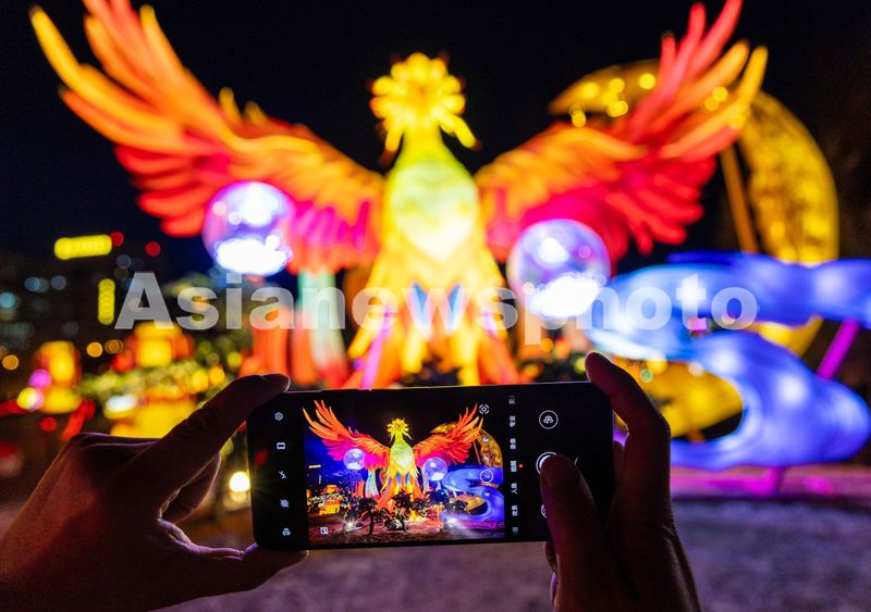 图片说明:2024年12月25日,人们在呼和浩特市赛罕区小草公园灯会上赏灯。
