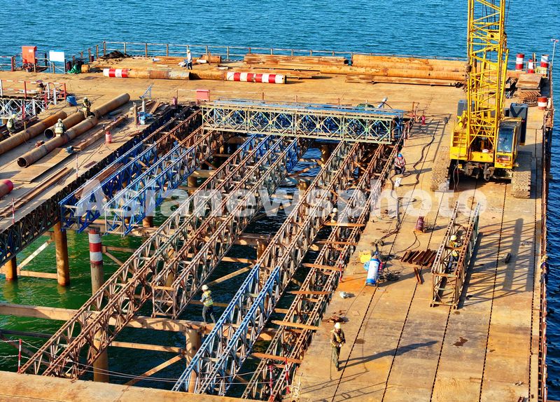 2024年12月26日,江西省吉安市吉水赣江大桥项目施工现场,工人在有序推进大桥桩基施工。