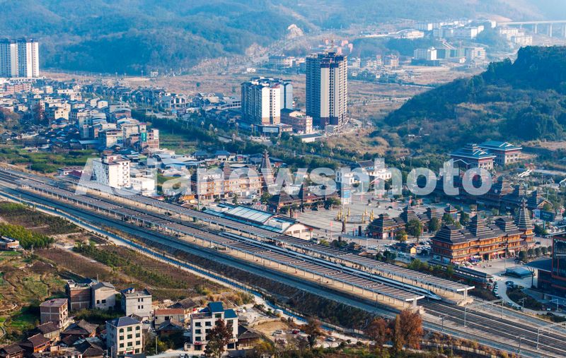 2024年12月26日,一列动车组列车在贵广高铁贵州省从江站停靠(无人机照片)。
