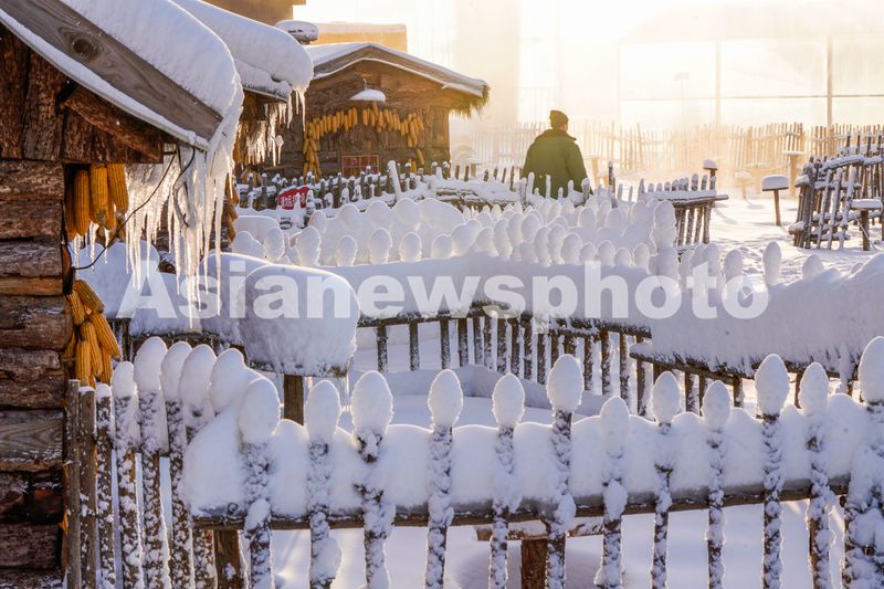 12月27日,在河北省遵化市团瓢庄镇山里各庄村山庄雪乡景区拍摄的晨景。