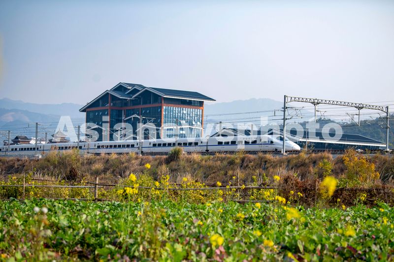 2024年12月26日,一列动车组列车驶出贵广高铁贵州省从江站。