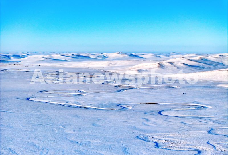 图片说明:2024年12月26日在呼伦贝尔市陈巴尔虎旗境内拍摄的莫尔格勒河景色(无人机照片)。