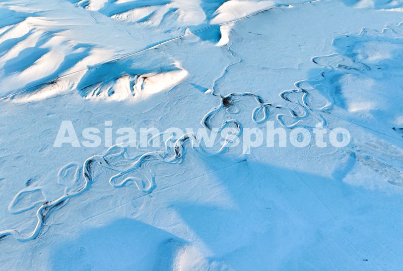 图片说明:2024年12月26日在呼伦贝尔市陈巴尔虎旗境内拍摄的莫尔格勒河景色(无人机照片)。