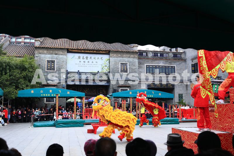 2024年12月23日,广东佛山祖庙博物馆内醒狮表演,展示非遗魅力,吸引众多游客和市民前来观赏。