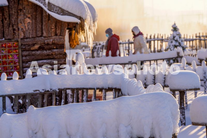 12月27日,在河北省遵化市团瓢庄镇山里各庄村山庄雪乡景区拍摄的晨景。