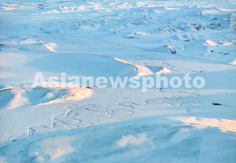 图片说明:2024年12月26日在呼伦贝尔市陈巴尔虎旗境内拍摄的莫尔格勒河景色(无人机照片)。