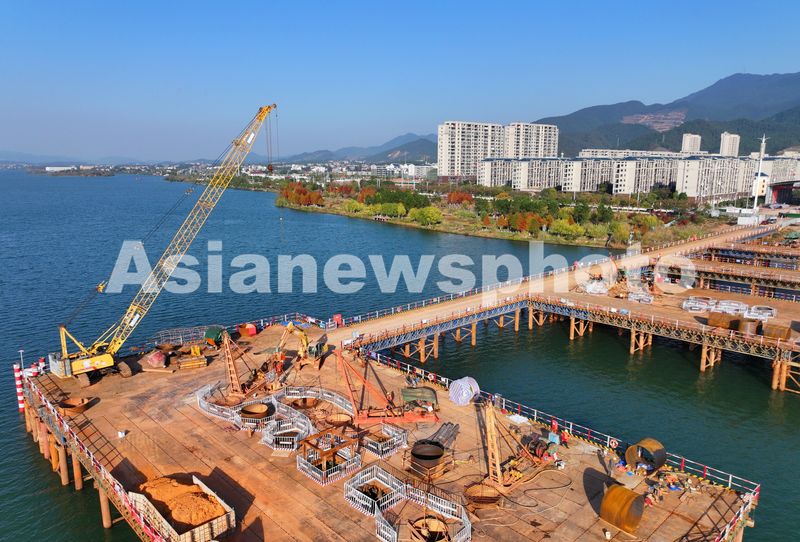 2024年12月26日,江西省吉安市吉水赣江大桥项目施工现场,工人在有序推进大桥桩基施工。
