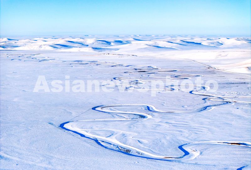 图片说明:2024年12月26日在呼伦贝尔市陈巴尔虎旗境内拍摄的莫尔格勒河景色(无人机照片)。