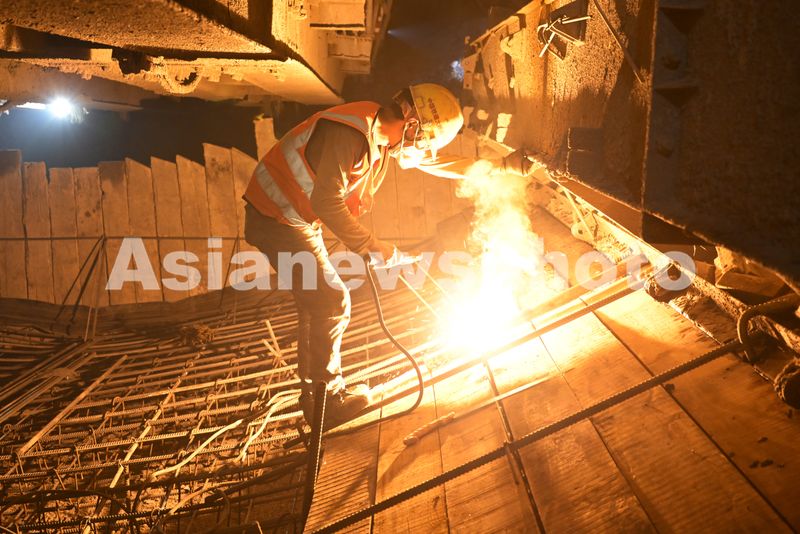 图片说明:2024年12月25日,位于宁夏回族自治区银川市永宁县境内的贺兰山隧道施工现场,中国铁建大桥局工人正在抢抓工期,推动重点项目跑出“加速度”。