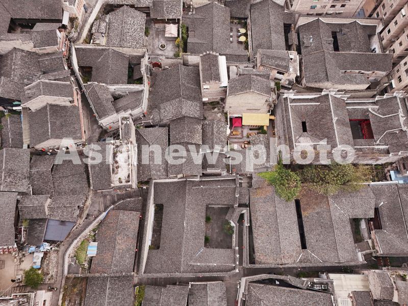 图片说明:2024年12月26日,贵州省黔东南苗族侗族自治州镇远县,航拍镇远古城独具特色的“歪门邪道”古建筑群,一条条纵横交错似迷宫般的古巷将“歪门”与“邪道”紧紧串联在一起,感受跨越千年的独特古韵穿越。