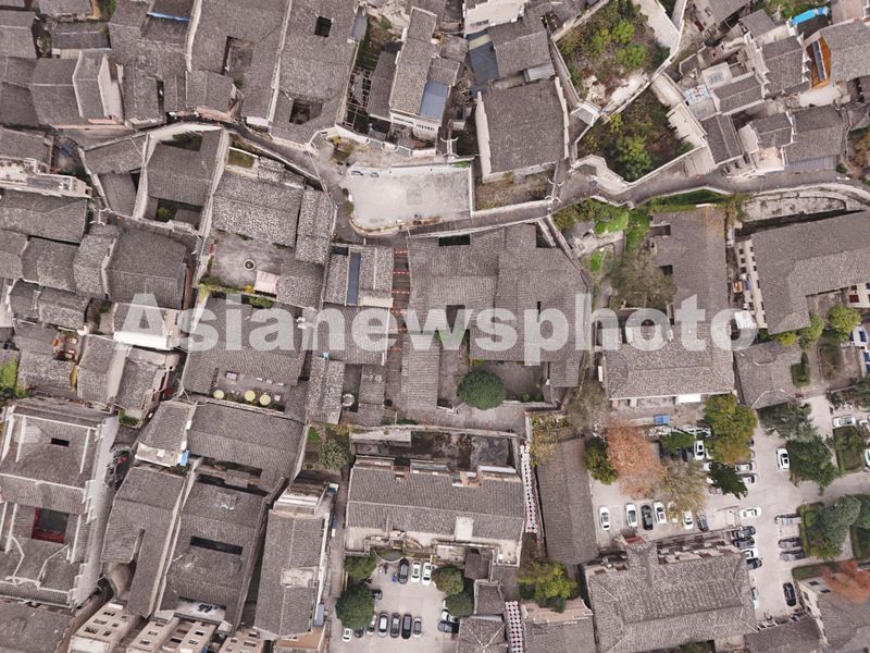 图片说明:2024年12月26日,贵州省黔东南苗族侗族自治州镇远县,航拍镇远古城独具特色的“歪门邪道”古建筑群,一条条纵横交错似迷宫般的古巷将“歪门”与“邪道”紧紧串联在一起,感受跨越千年的独特古韵穿越。