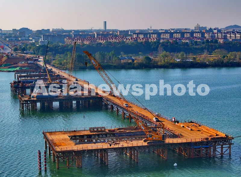 2024年12月26日,江西省吉安市吉水赣江大桥项目施工现场,工人在有序推进大桥桩基施工。