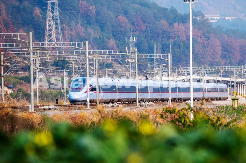 2024年12月26日,一列动车组列车在贵广高铁贵州省从江县洛香镇段附近行驶。