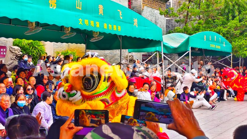 2024年12月23日,广东佛山祖庙博物馆内醒狮表演,展示非遗魅力,吸引众多游客和市民前来观赏。
