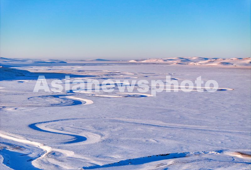 图片说明:2024年12月26日在呼伦贝尔市陈巴尔虎旗境内拍摄的莫尔格勒河景色(无人机照片)。