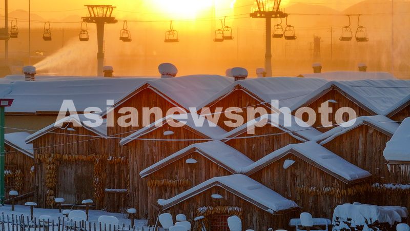 12月27日,在河北省遵化市团瓢庄镇山里各庄村山庄雪乡景区拍摄的晨景。