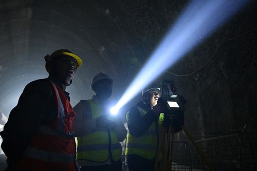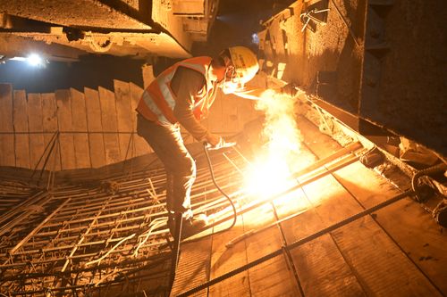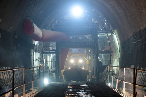 图片说明:2024年12月25日,位于宁夏回族自治区银川市永宁县境内的贺兰山隧道施工现场,中国铁建大桥局工人正在抢抓工期,推动重点项目跑出“加速度”。