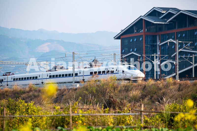 2024年12月26日,一列动车组列车驶出贵广高铁贵州省从江站。