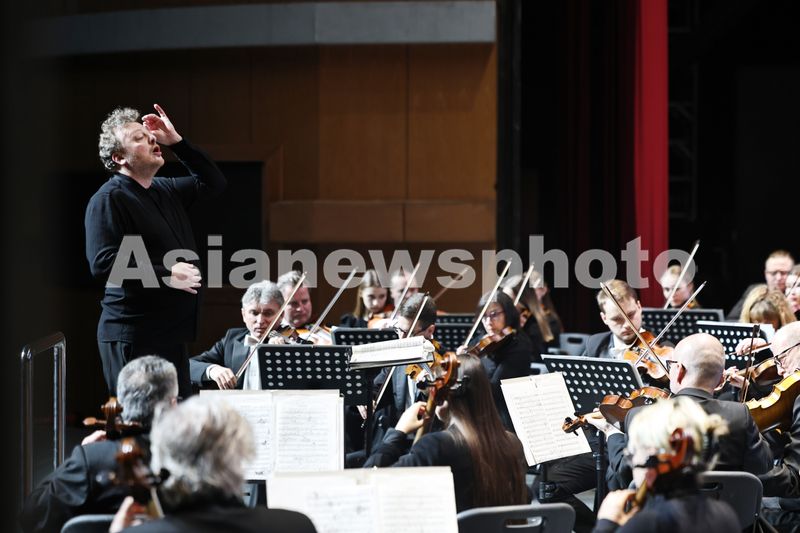 2024年12月26日,在江苏省南通市,2014年格莱美奖获得者、乐队指挥家亚当·克洛切克在波兰爱乐乐团《2025南通新年音乐会》的演出现场。