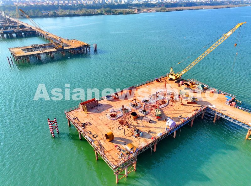 2024年12月26日,江西省吉安市吉水赣江大桥项目施工现场,工人在有序推进大桥桩基施工。