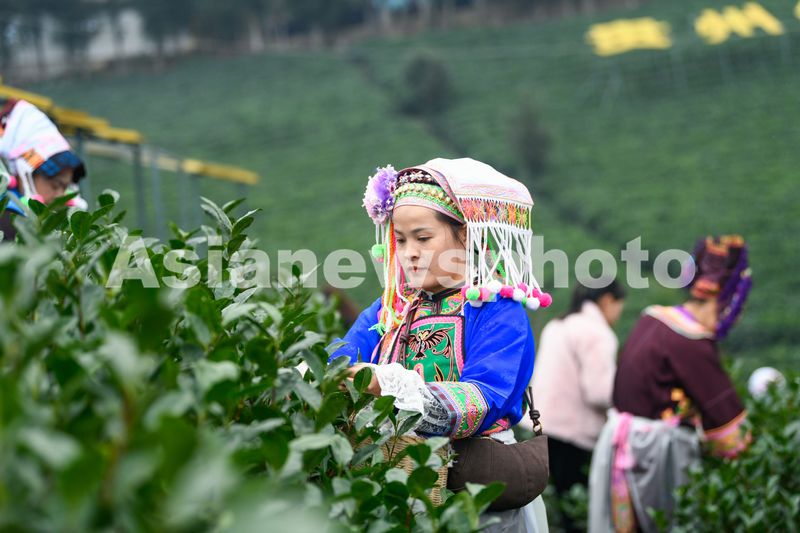 1月1日,少数民族群众在贵州省黔西南布依族苗族自治州普安县茶源街道联盟村采摘茶叶。