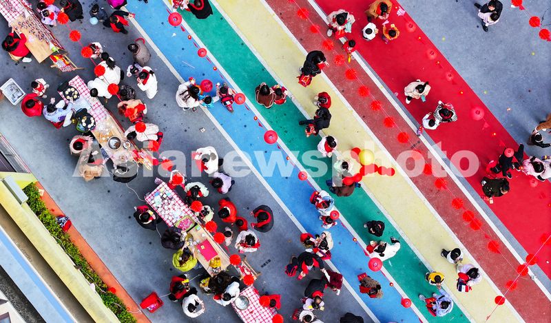 图片说明:2024年12月31日,湖南省永州市新田县叠翠幼儿园,家长带着着小朋友品尝特色小吃。