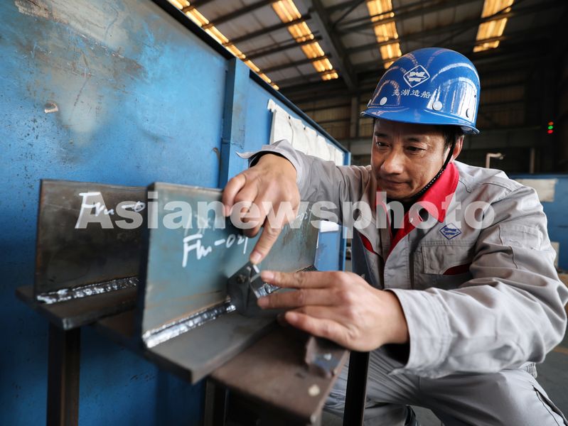 2025年1月1日,安徽省芜湖市三山经济开发区芜湖造船厂,工人们坚守岗位正在赶制出口船舶订单。