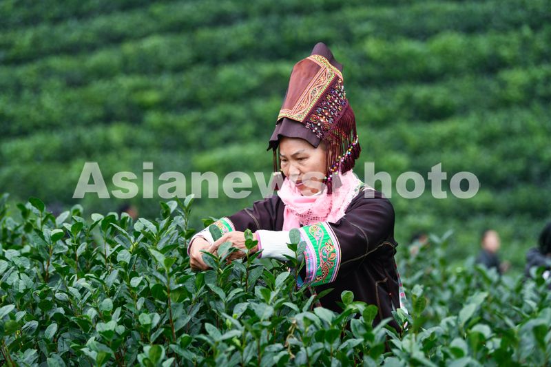 1月1日,少数民族群众在贵州省黔西南布依族苗族自治州普安县茶源街道联盟村采摘茶叶。