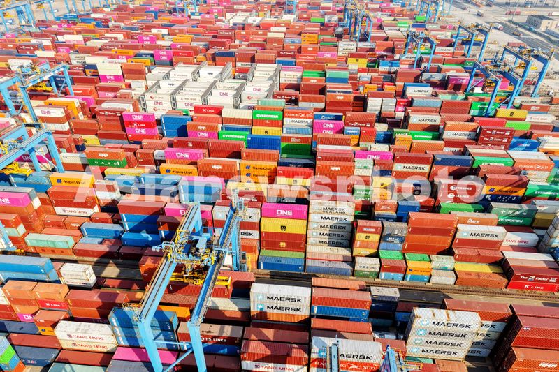 2025年1月1日,2025年新年第一天。山东港口青岛前湾港一派繁忙,装载外贸集装箱的货轮穿梭进出港口,桥吊在有序装卸集装箱,一辆辆货车则不停歇将集装箱运进或运出港口,众多工作人员在岗位上迎来新年第一缕阳光,力争新年生产开门红。