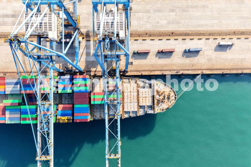 2025年1月1日,山东港口青岛港全自动化码头,货轮在装卸集装箱。