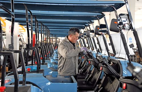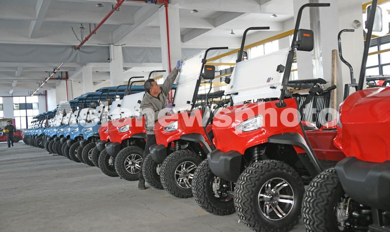 2025年1月2日,在浙江省台州市仙居县经济开发区的浙江自留地车业有限公司生产车间内,工人忙着装配新能源观光车辆。