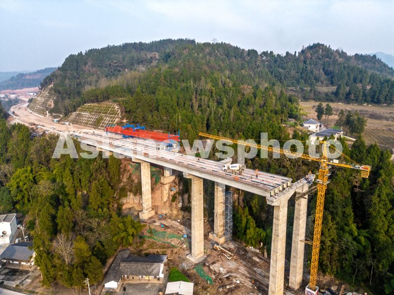 2025年1月2日,四川省巴中市通江县境内,镇广高速广纳通江河特大桥项目正在加快建设。