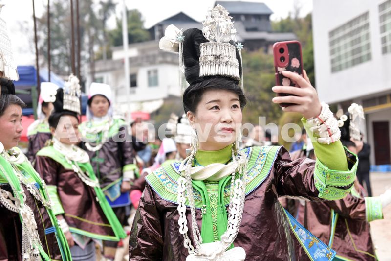 图片说明:2024年12月25日,苗族同胞在贵州省黔东南苗族侗族自治州从江县加鸠镇加牙苗寨观看踩歌堂。