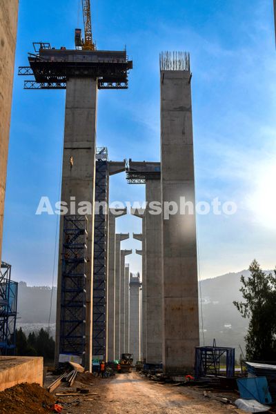 2025年1月2日,四川省巴中市通江县境内,镇广高速广纳通江河特大桥项目正在加快建设。