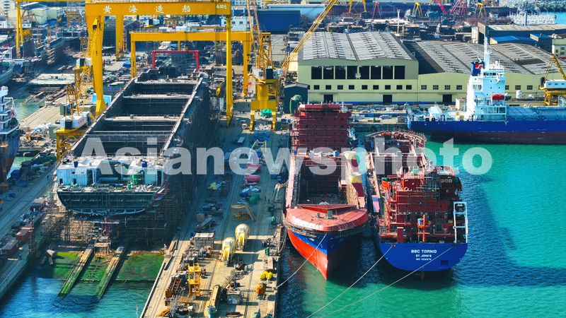 2025年1月2日,新年伊始,山东省荣成市石岛管理区各修造船基地呈现一派繁忙的景象。造船企业开足马力,赶制满满的新年订单,船坞内产业工人们抓紧建造各类大型船舶,呈现一派繁忙景象。