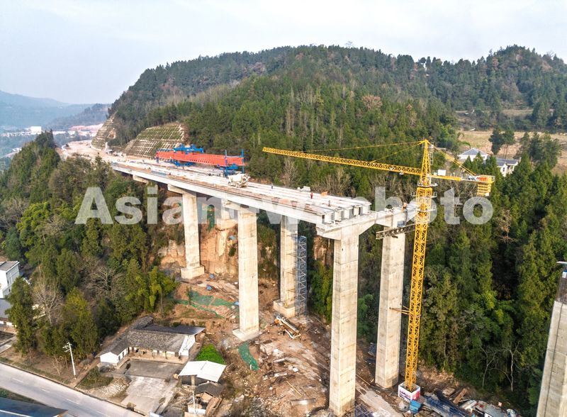 2025年1月2日,四川省巴中市通江县境内,镇广高速广纳通江河特大桥项目正在加快建设。