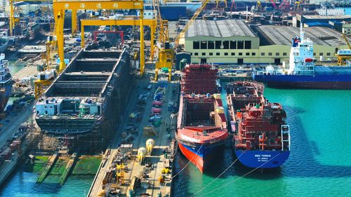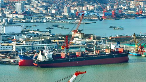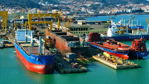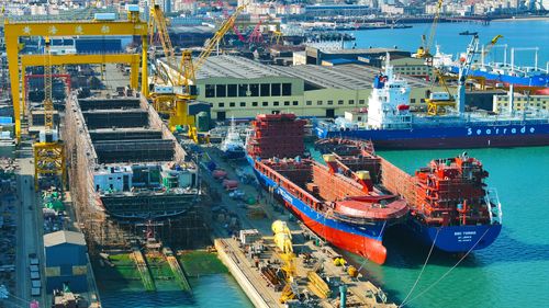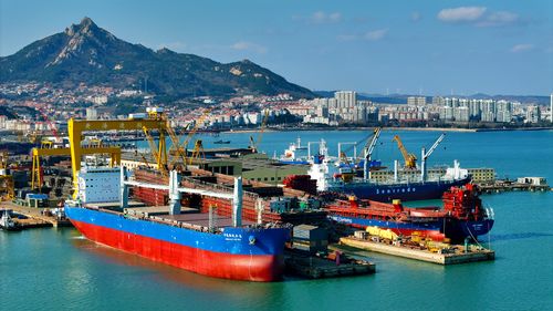 2025年1月2日,新年伊始,山东省荣成市石岛管理区各修造船基地呈现一派繁忙的景象。造船企业开足马力,赶制满满的新年订单,船坞内产业工人们抓紧建造各类大型船舶,呈现一派繁忙景象。