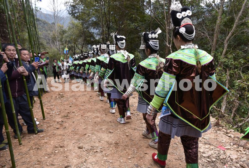 图片说明:2024年12月25日,苗族同胞在贵州省黔东南苗族侗族自治州从江县加鸠镇加牙苗寨前往河边参加祭祖活动。