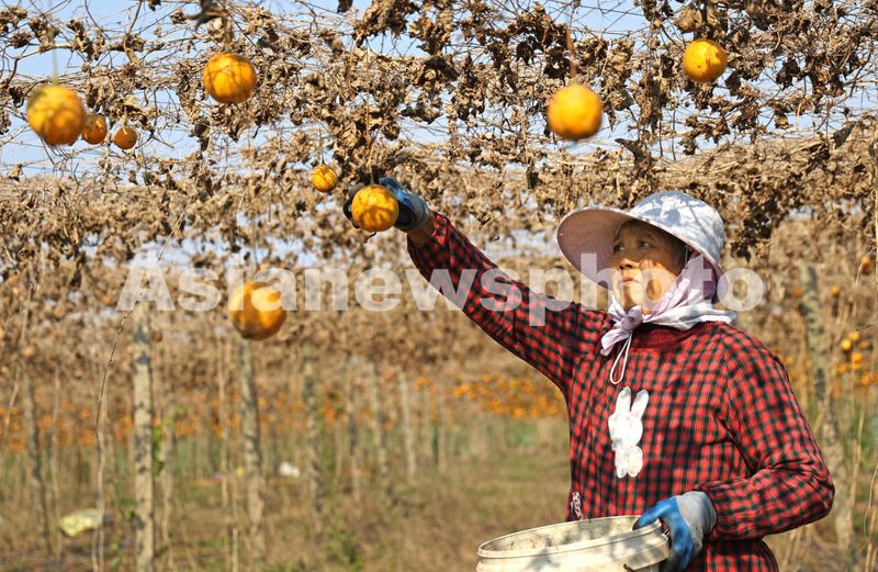 2025年1月5日,小寒节气到来,安徽省安庆市宿松县省属农垦华阳河农场,种植户在田间采摘瓜蒌。