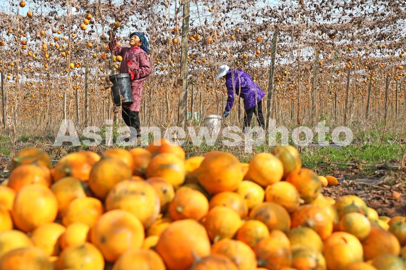 2025年1月5日,小寒节气到来,安徽省安庆市宿松县省属农垦华阳河农场,种植户在田间采摘瓜蒌。