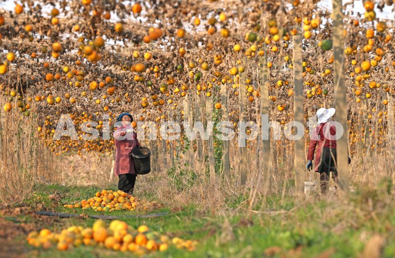 2025年1月5日,小寒节气到来,安徽省安庆市宿松县省属农垦华阳河农场,种植户在田间采摘瓜蒌。