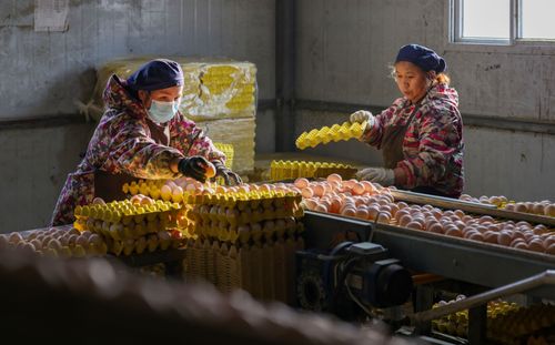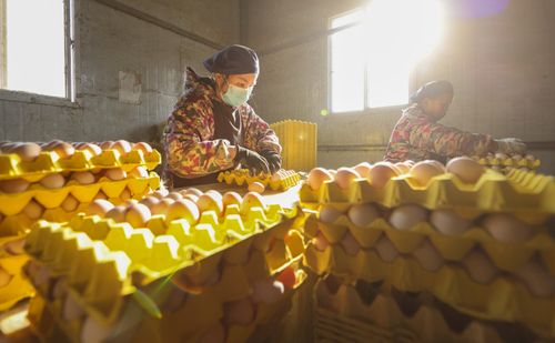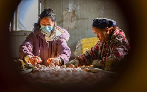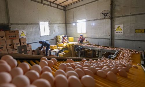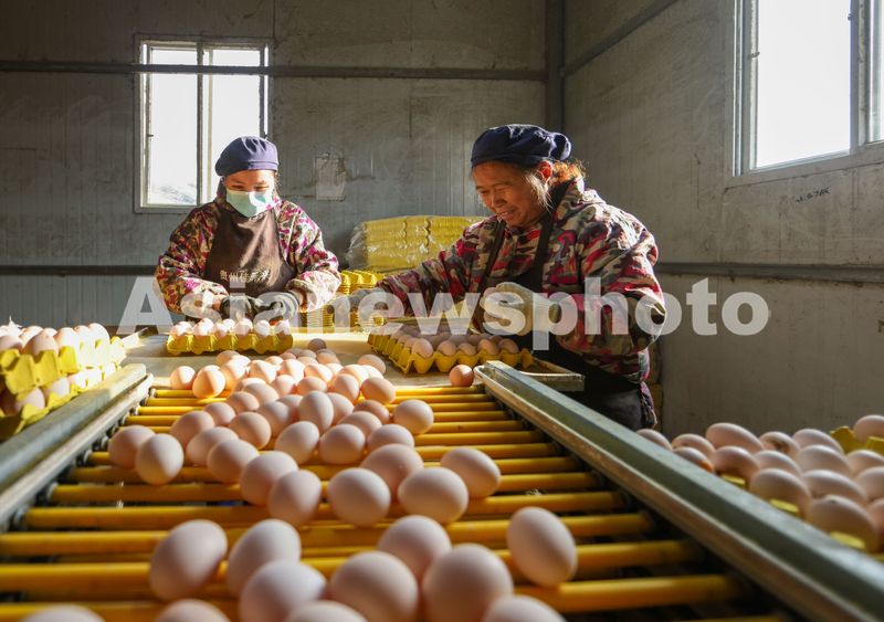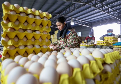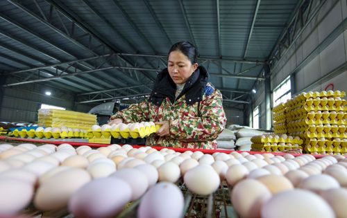 2025年1月6日,随着春节临近,贵州省铜仁市玉屏侗族自治县平溪街道安坪村蛋鸡养殖场抓紧组织人力采收鸡蛋,供应节日市场。