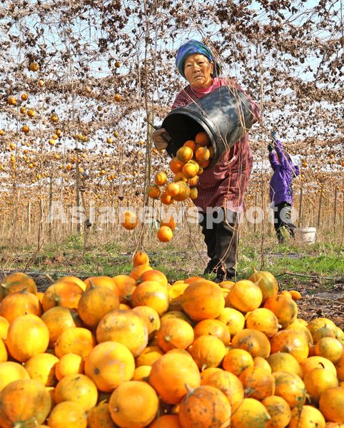 2025年1月5日,小寒节气到来,安徽省安庆市宿松县省属农垦华阳河农场,种植户在田间采摘瓜蒌。