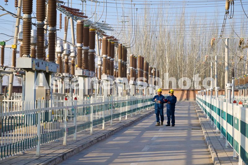 2025年1月1日,国网银川供电公司变电运维中心员工在宁夏银川芦花220千伏变电站开展“人机联合”巡检。