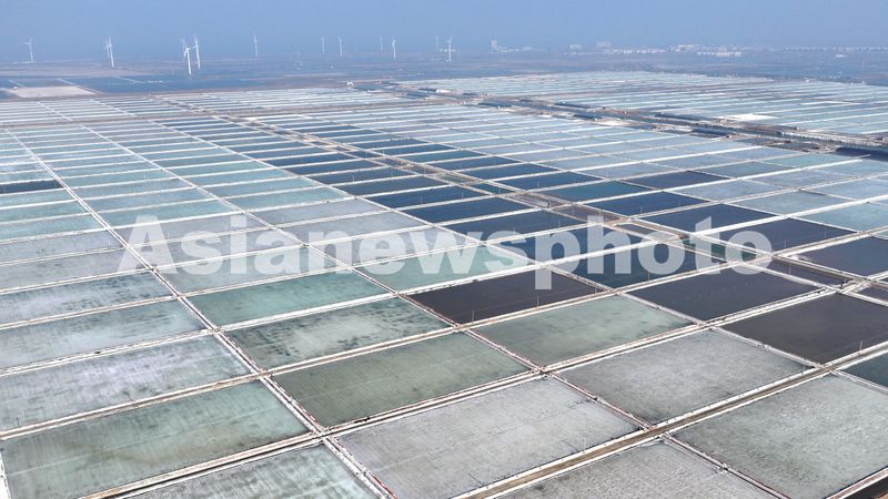 寒冬时节,在江苏省连云港市灌云县的灌西盐场,成片的盐田宛如一块快巨大的玻璃镶嵌于大地之上,独特的景致形成冬日里一道亮丽的风景线。