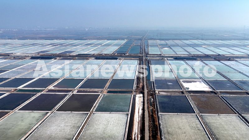 寒冬时节,在江苏省连云港市灌云县的灌西盐场,成片的盐田宛如一块快巨大的玻璃镶嵌于大地之上,独特的景致形成冬日里一道亮丽的风景线。